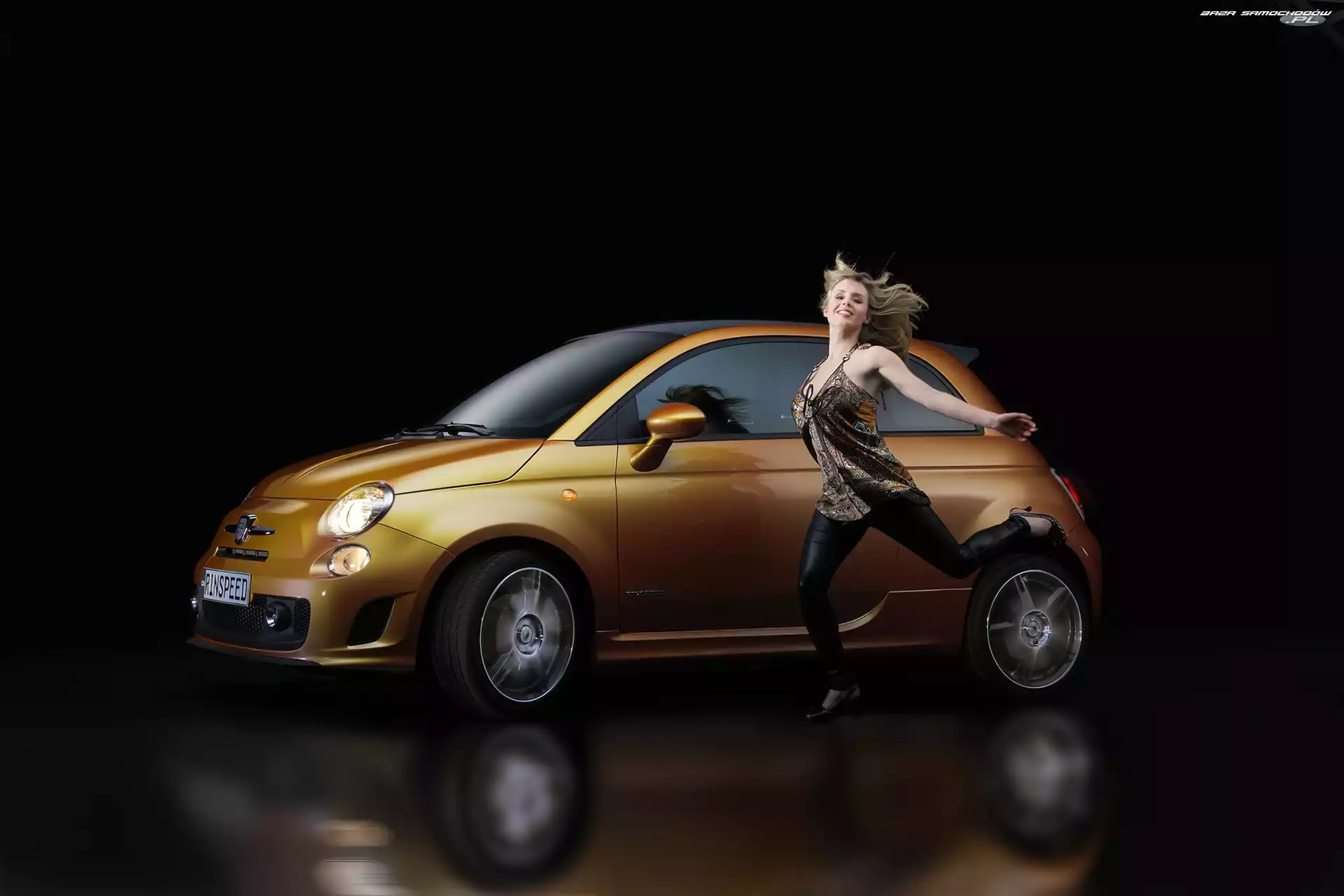 Abarth 500, Kobieta, Złoty, Odbicie- Zdjęcia samochodów