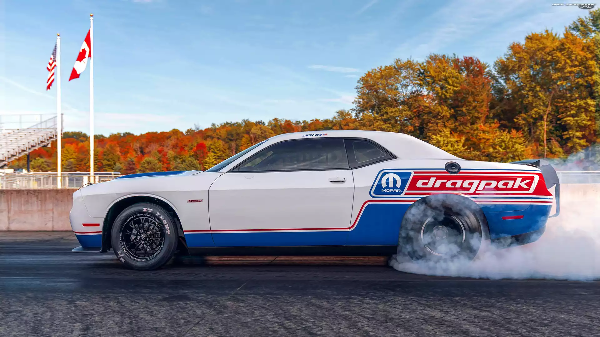 Bok, Biało-niebieski, Dodge Challenger Mopar Drag Pak- Zdjęcia samochodów