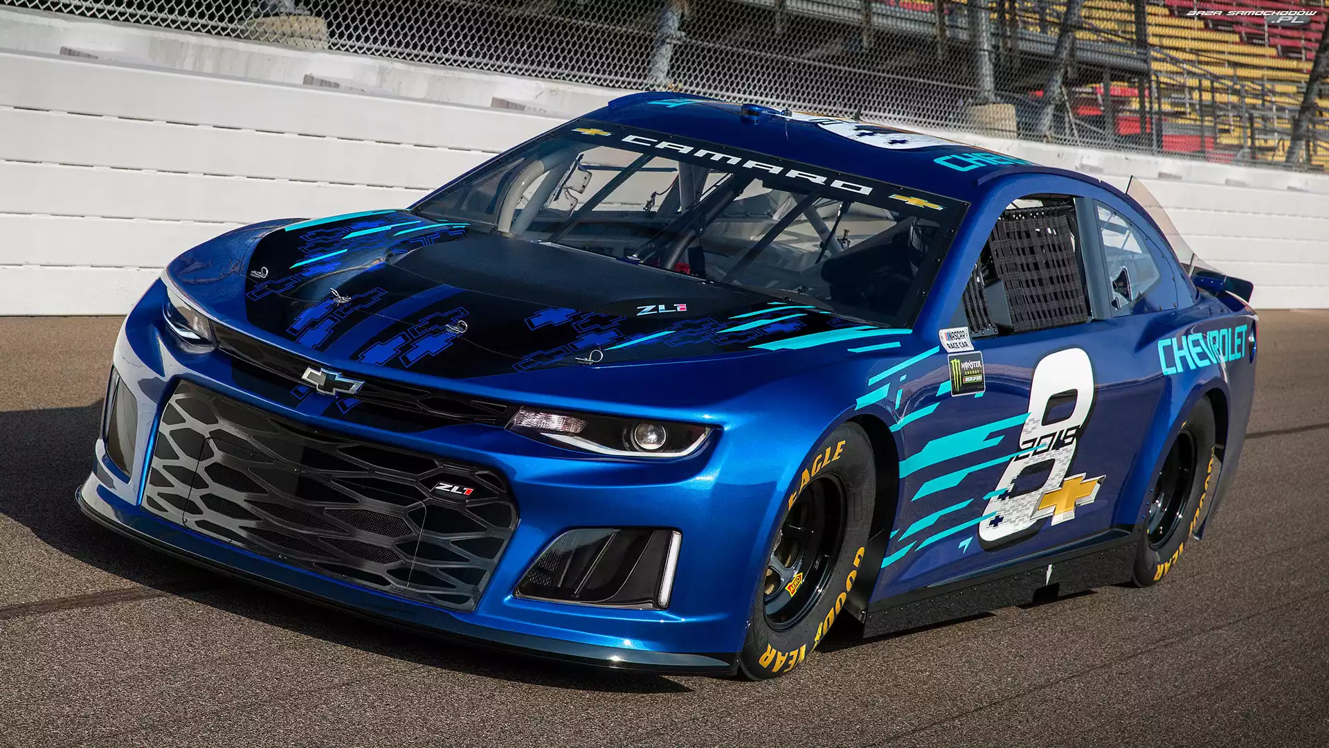 Samochód: Wyścigowy, Niebieski, Chevrolet Camaro ZL1