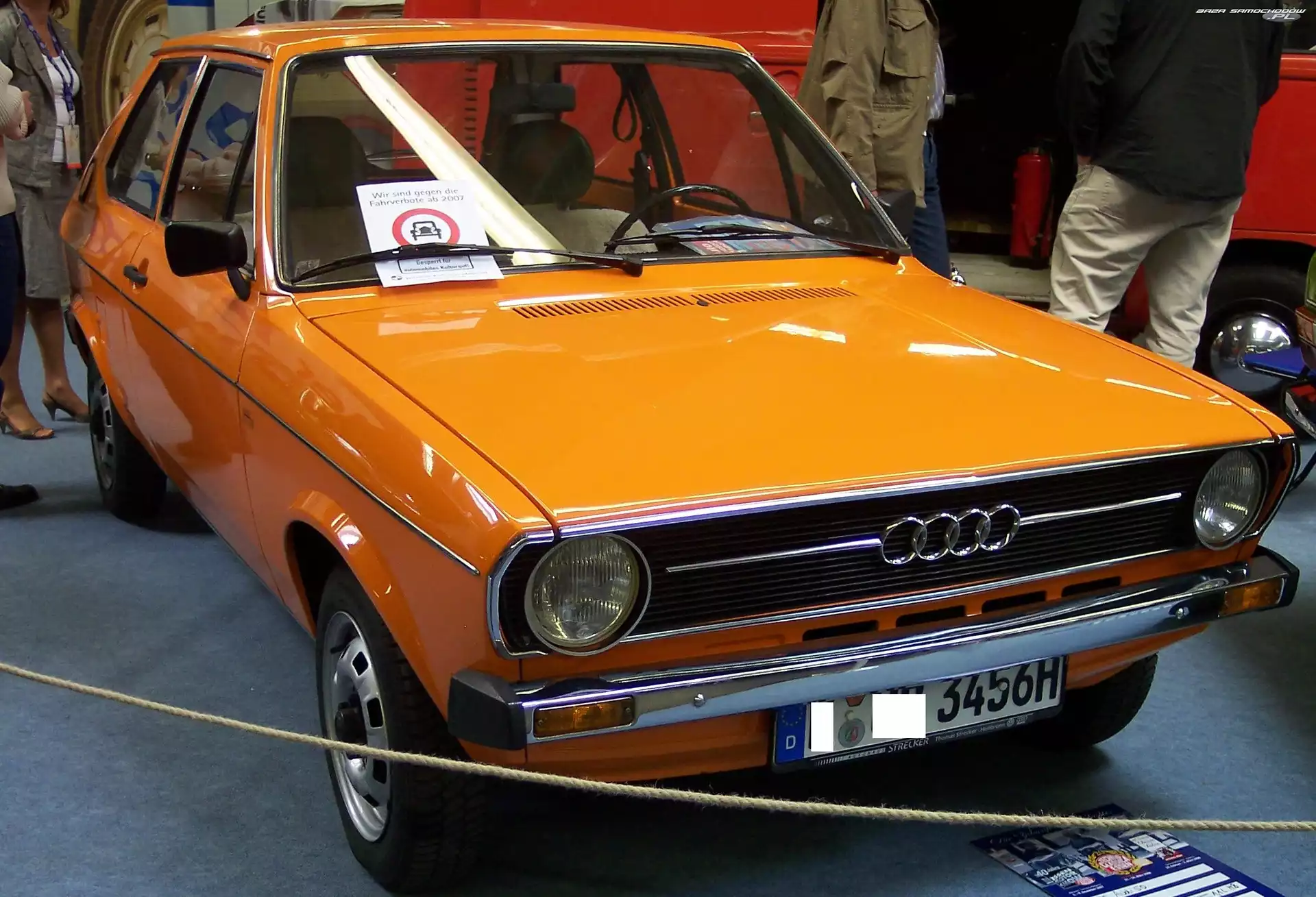 Prezentacja, Audi 50, Wystawa Hatchback, Audi 50 Audi 50 Reklama, Pomarańczowe, Audi 50 Audi 50, Chrom, Przód, Zderzak Wystawa, Audi 50, Salon Drzwi, Audi 50